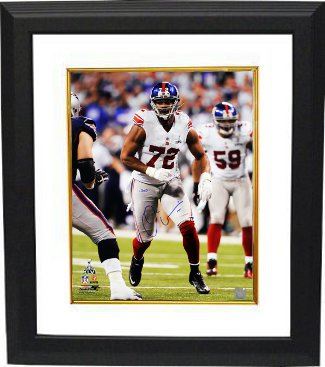 Osi"Umenyiora plays defensive end in the National Football League for the New York Giants. Umenyiora is one of three British-born players to have won a Super Bowl ring. Umenyiora has been selected for the Pro Bowl twice, and holds the Giants franchise record for most sacks in one game, coming against the Philadelphia Eagles in 2007. Osi Umenyiora has hand signed this New York Giants 16x20 Photo from Super Bowl XLVI. Tri-Star Hologram and Certificate of Authenticity from Athlon Sports. Custom White Mat and Premium Black Frame as shown.
