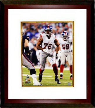 Osi"Umenyiora plays defensive end in the National Football League for the New York Giants. Umenyiora is one of three British-born players to have won a Super Bowl ring. Umenyiora has been selected for the Pro Bowl twice, and holds the Giants franchise record for most sacks in one game, coming against the Philadelphia Eagles in 2007. Osi Umenyiora has hand signed this New York Giants 16x20 Photo from Super Bowl XLVI. Tri-Star Hologram and Certificate of Authenticity from Athlon Sports. Custom White Mat and Premium Mahogany Frame as shown.