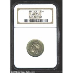 Oskar II 50 Ore/15 Skilling 1874, KM346, AU55 NGC. A nice original coin with light toning. Important