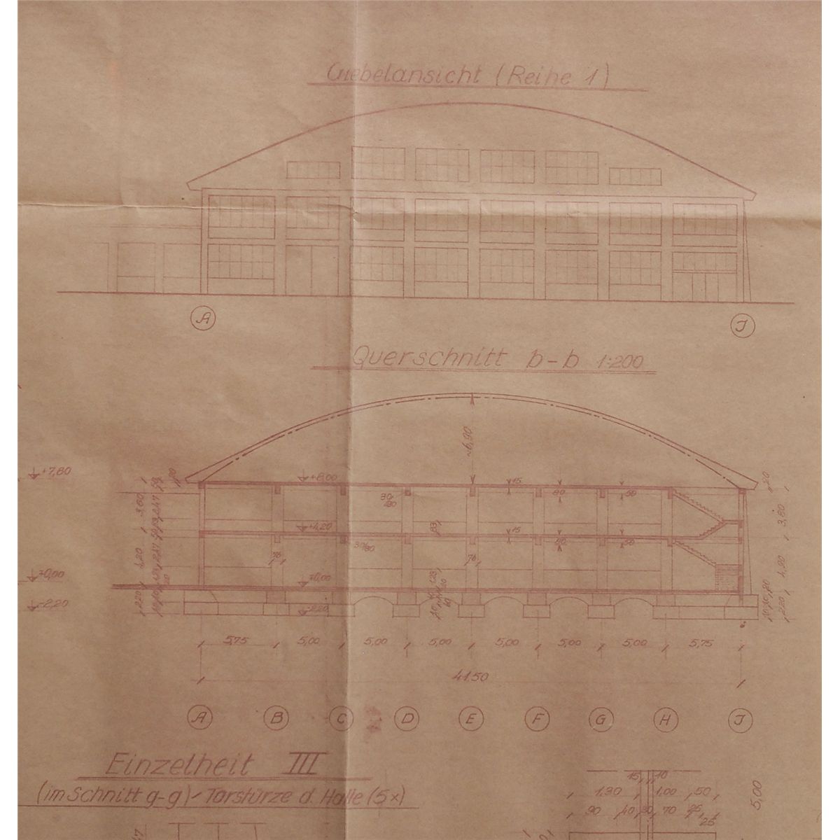 Schindler's enamelware manufacturing company had been operating at his Krakow plant, called 'Emalia,' for four years when he contracted with Siemens-Bauunion in the spring of 1943 to construct a large, hangar-style building to be used as a stamping facility—the building referenced and depicted in these plans. Constructing the stamping factory was part of Schindler’s larger idea to increase the size of his Jewish work force at Emalia, where he was also building a new sub-camp to house the growing number of Jewish workers. The stamping facility, which was the largest building at Emalia, became the centerpiece of the complex. Without the plans for it, Schindler would have been unable to convince Amon Goeth and the SS to allow him to continue building a separate sub-camp—Goeth, who ran the nearby Plaszow concentration camp, had an arrangement with Schindler that allowed him to employ the Jewish prisoners. While those detained at Plaszow were in constant fear for their lives under Goeth's sadistic reign, Schindler's complex offered a safe haven, where they had improved access to food and medicine, could worship freely, and did not need to live in terror. Consequently, if the famous Schindler’s lists of the fall of 1944 can be called 'the lists of life,' then the Siemens-Bauunion stamping factory can be called the 'factory of life,' since without it Schindler would not have been able to construct his sub-camp that ultimately housed 1000 Jewish workers.