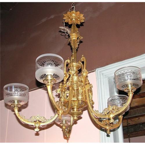 Fantastic English Osler 5L chandelier, originally gas and converted to electric.