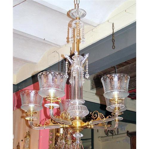 This is a very good quality five branch cut glass chandelier,Circa 1890 originally gas and later electrified.