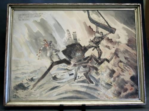 Ossian Elgström gouache "Idun bortkastar ungdomens äpplen Brage slungar sitt skaldeskap före Ragnarök" 70x98 signerad OE 1939 Proveniens Ängelholms Kommun D