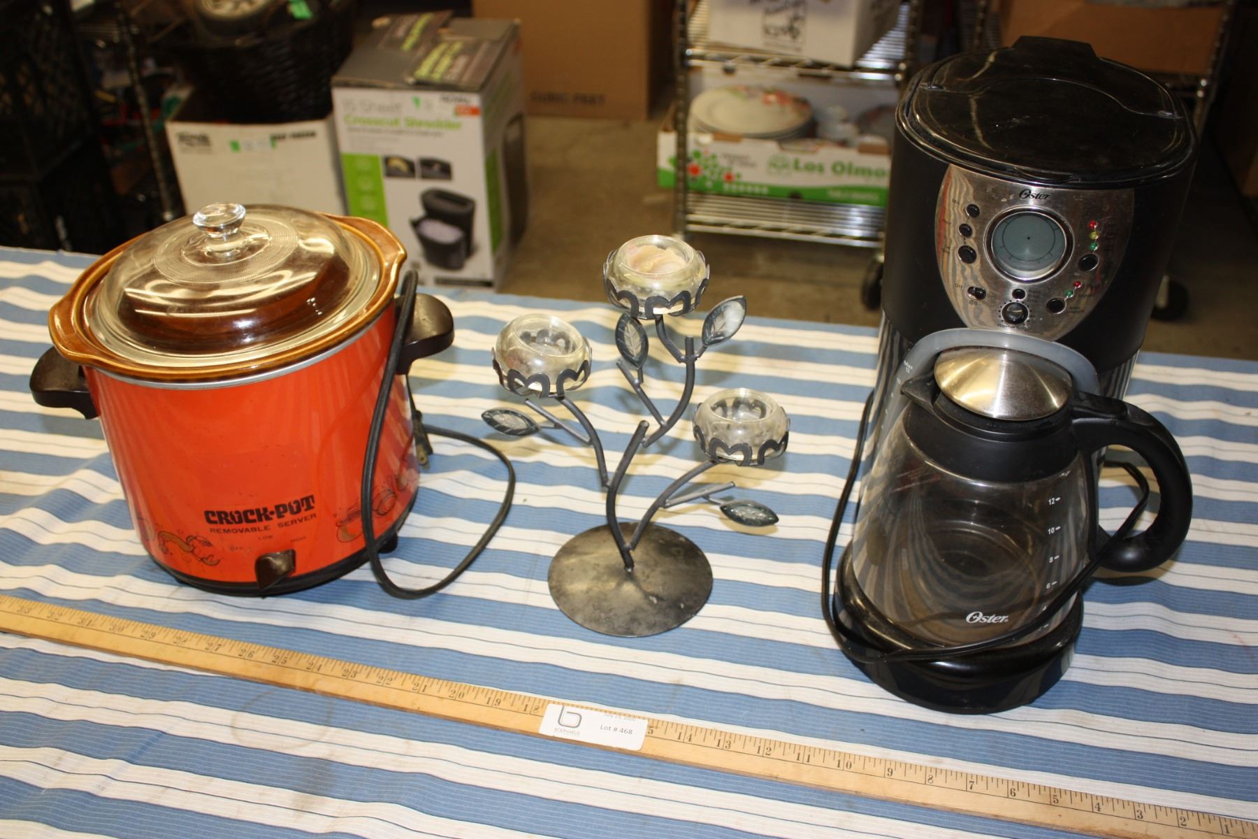 Oster Coffee Pot (Working), Crock Pot (Working) and Candle Holder