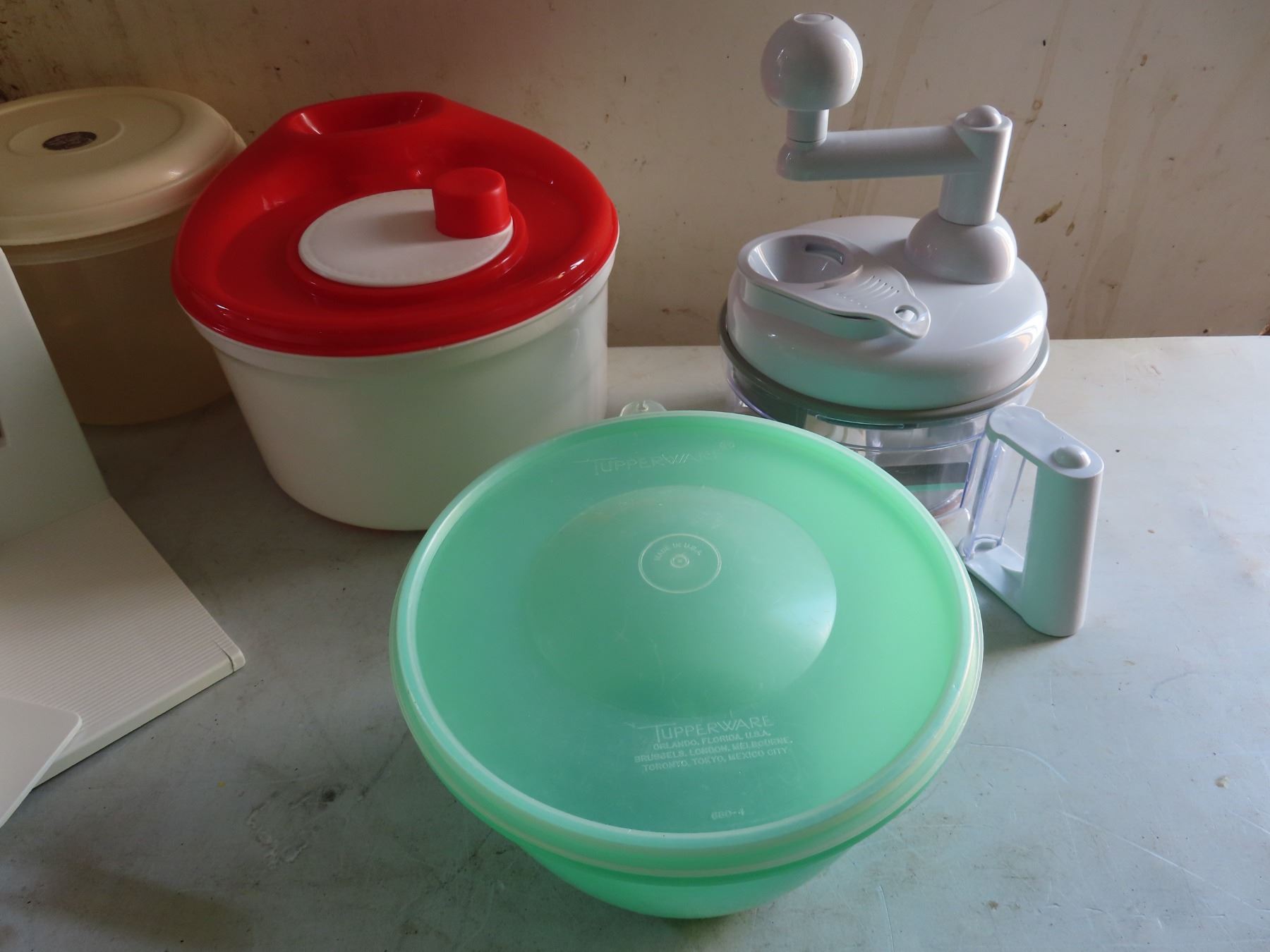 Oster food Processor & assorted Tupperware & Food Prep containers etc.