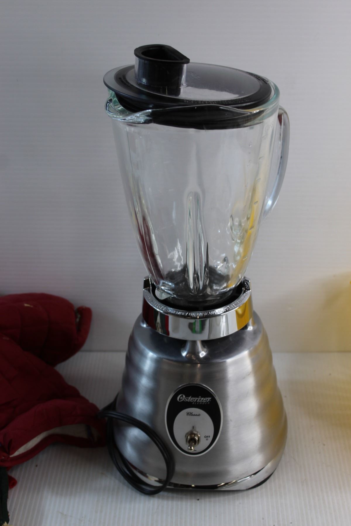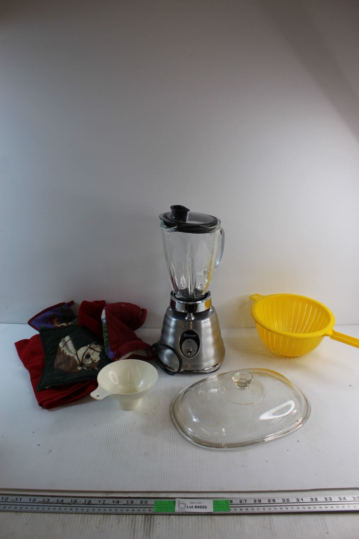 Osterizer Blender - Tested, Plastic Strainer, Assorted Kitchen Cloths and Assorted Kitchenware
