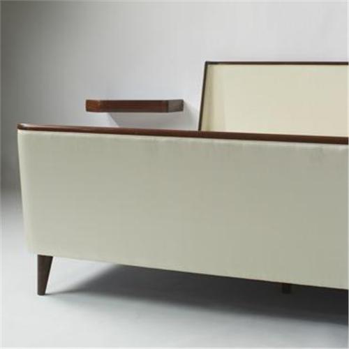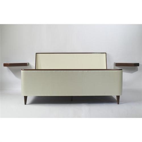 Osvaldo Borsani<BR>bed<BR>Italy, c. 1955<BR>mahogany, linen<BR>71.5 w x 82 d x 37.5 h inches<BR><BR>Condition of the item is not included in this description. Condition reports are available from Wright upon request. Wright strongly recommends that you review a condition report for each item on which you plan to bid.