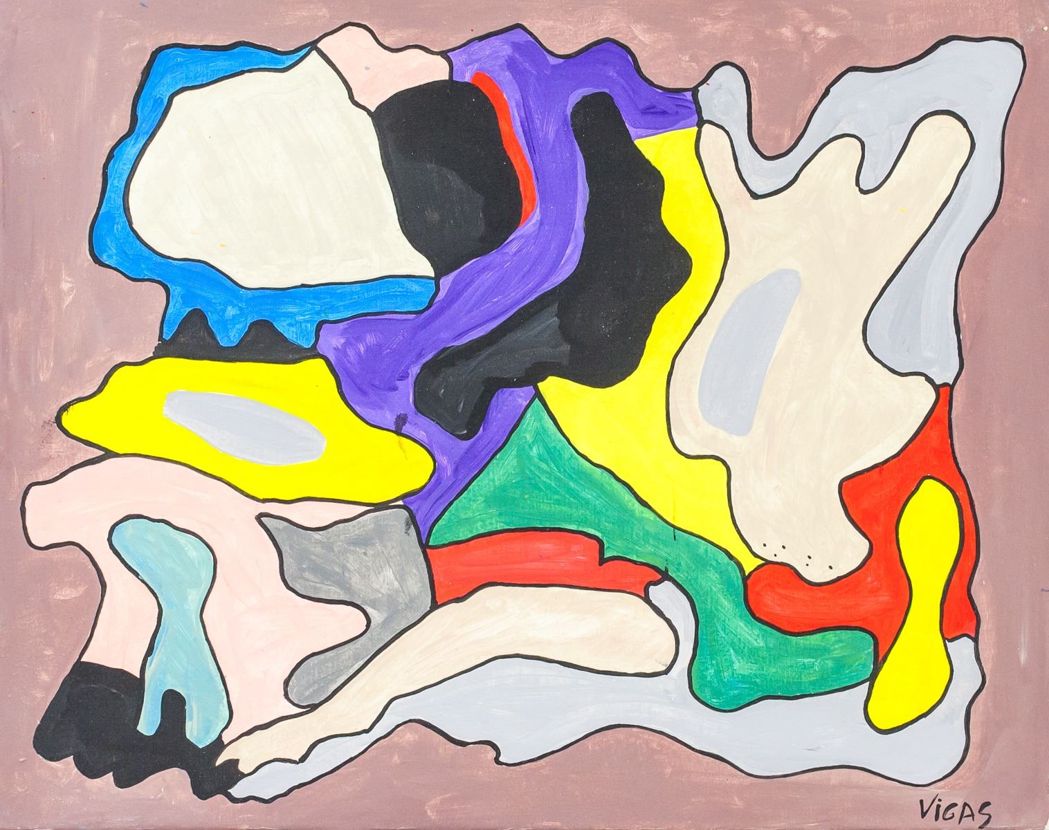 Oil on canvas. Featuring abstract composition. Signed "VIGAS" in the bottom right corner. Attributed to Oswaldo Vigas (1923-2014, Venezuelan). 39 x 49 cm (15.25 x 19.5 in).