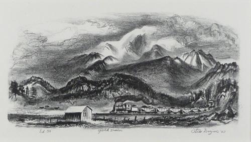 Otis Dozier (1904 - 1987) Lithograph "Gold Train" 1943 Signed lower right 7 1/2" x 14 1/2"