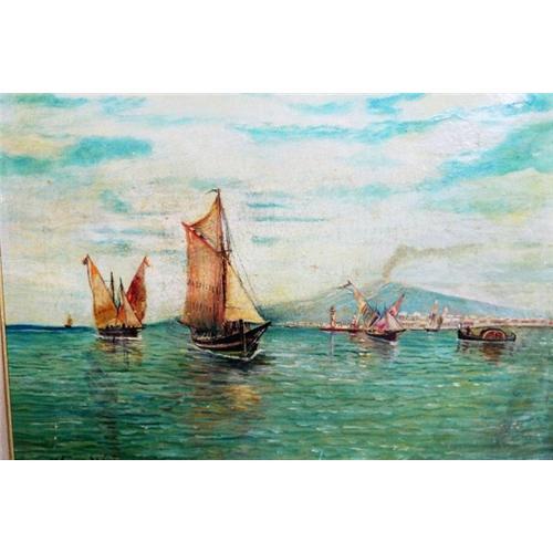 Well executed marine view of vessels in the Bay of Naples with Vesuvius in the background. Fine craquelure and a few small paint fleck restorations in this otherwise solid example of American 19th. C. marine art...The artist Otis S. Weber is well listed in Davenport's Art Reference with auction results from the sale of his works over $7,000.00! Guaranteed old, recently acquired from an Atlanta art collector's estate...Thanks for looking, Chas.