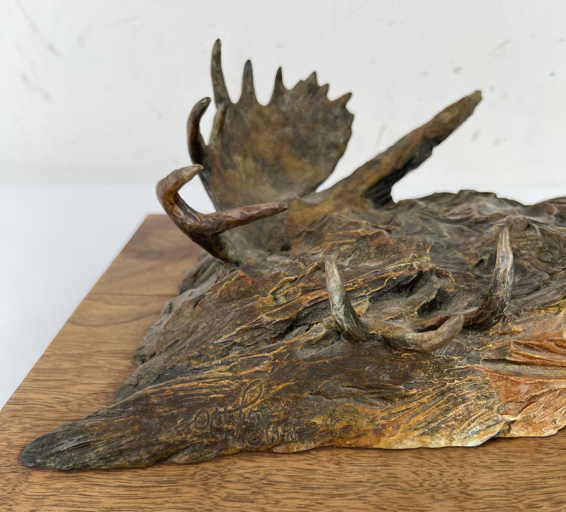 Base is 9 1/2" by 14 1/2". Bronze is 7 1/2" tall. Ott Jones (20th century) was active/lived in Montana. Ott Jones is known for Sculptor-wildlife and figure.