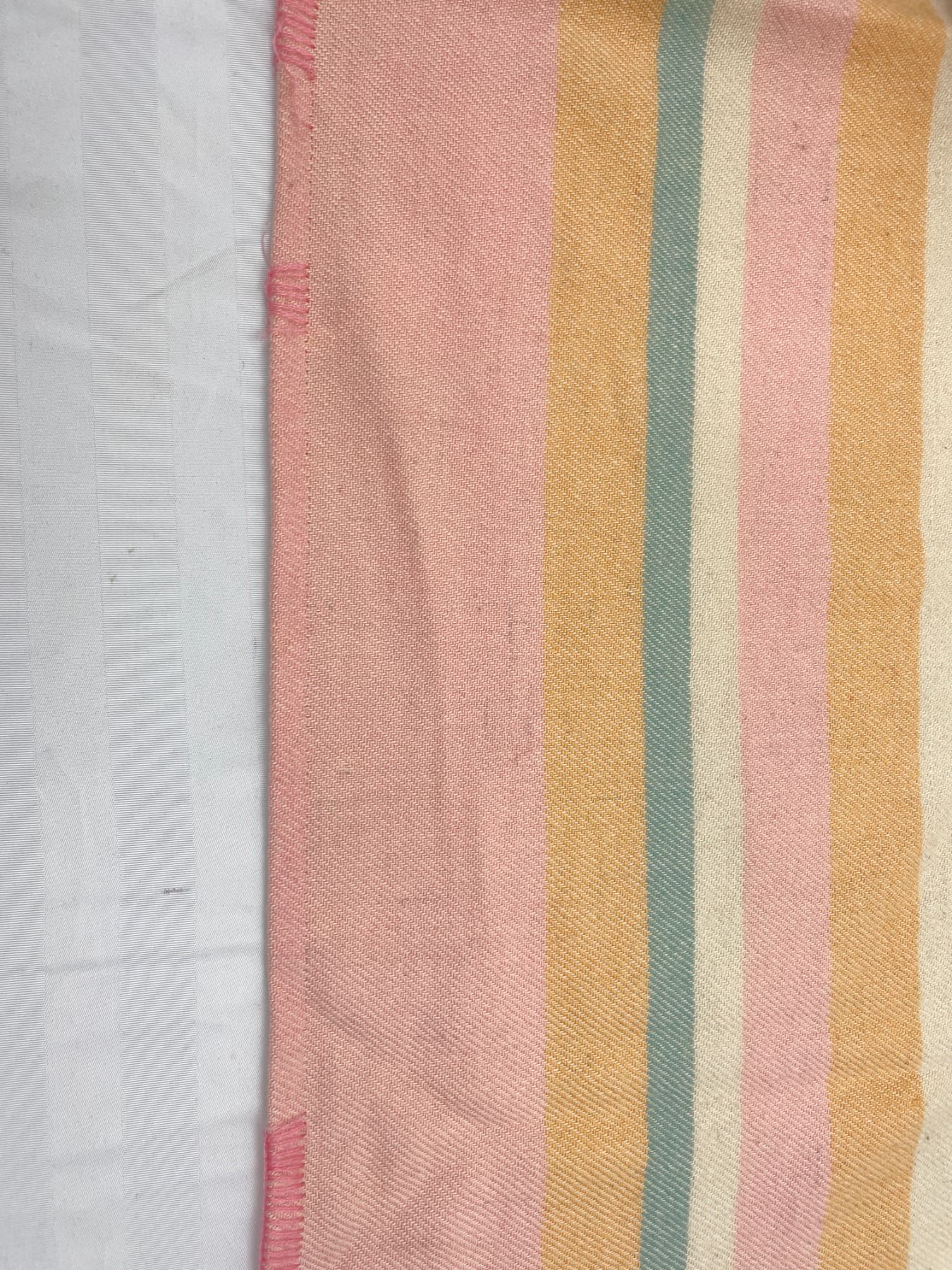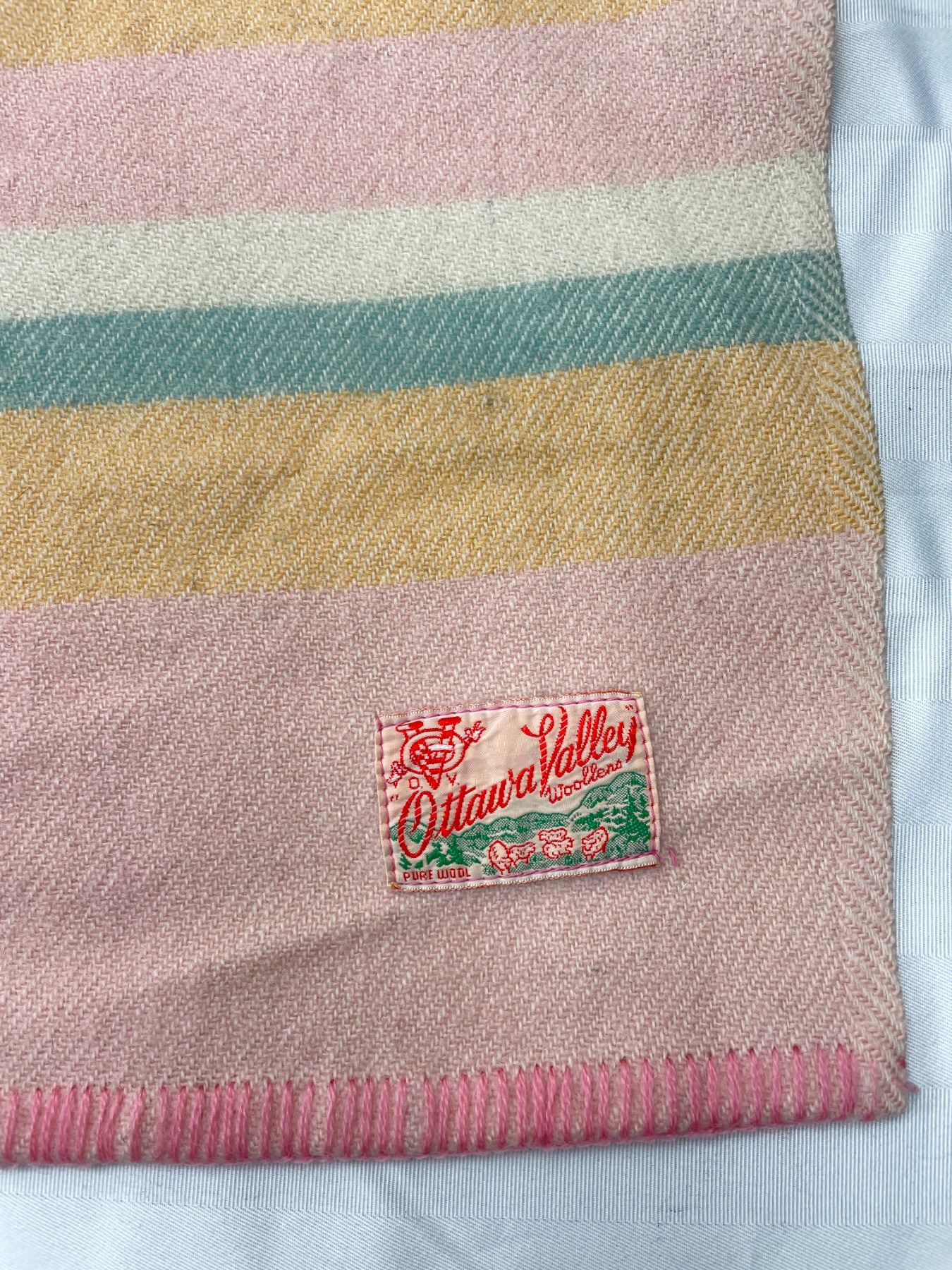 Ottawa Valley Made in Canada Pure Wool Blanket. Stitching coming out of one side could be fixed. Dimensions 82" length x 69" wide. Small stains needs cleaning.