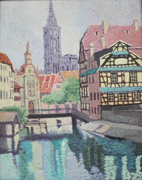 Oil on canvas. Germany. Approx. 31" H x 24" W unframed, 35 1/2" H x 28 1/2" W framed.