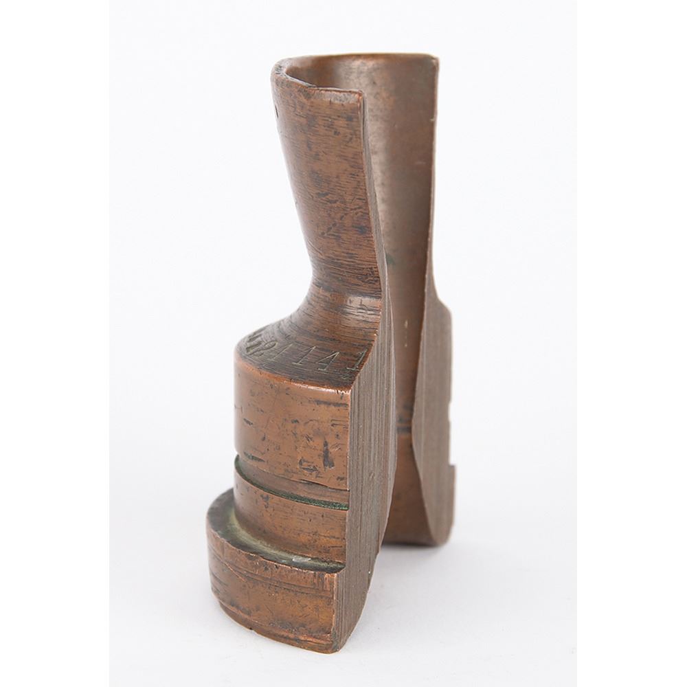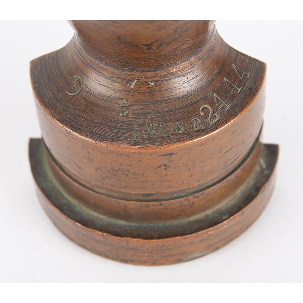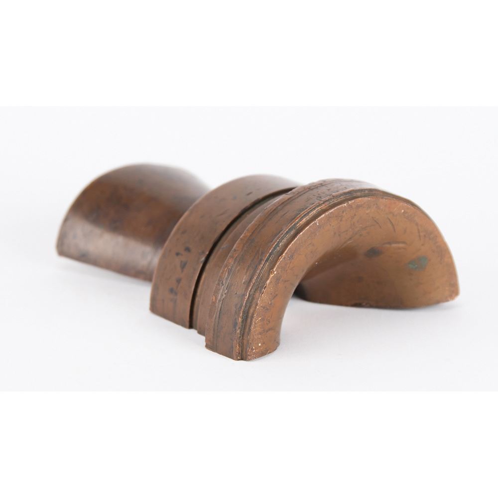 Interesting cross-section of a circa 1950s bronze rocket nozzle likely for an Aerojet Aerobee rocket, originating from the collection of Otto Berg. The piece measures approximately 3.75Àù x 5Àù x 2Àù and is stamped on the edge with partial part numbers, "24441," as well as several obliterated markings. In very good to fine condition.