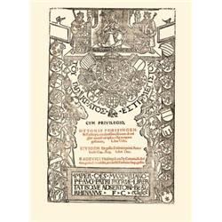 A history of the world from the beginnings to the early 12th century. The woodcut cover of the first volume is a work of Urs Graf. The ornate woodcut frame of the cover of the second volume is a work of Holbein. First edition. The last white page of the first volume and the last page of the second volume are missing. Contains numerous references to Hungary. In contemporary paper binding.