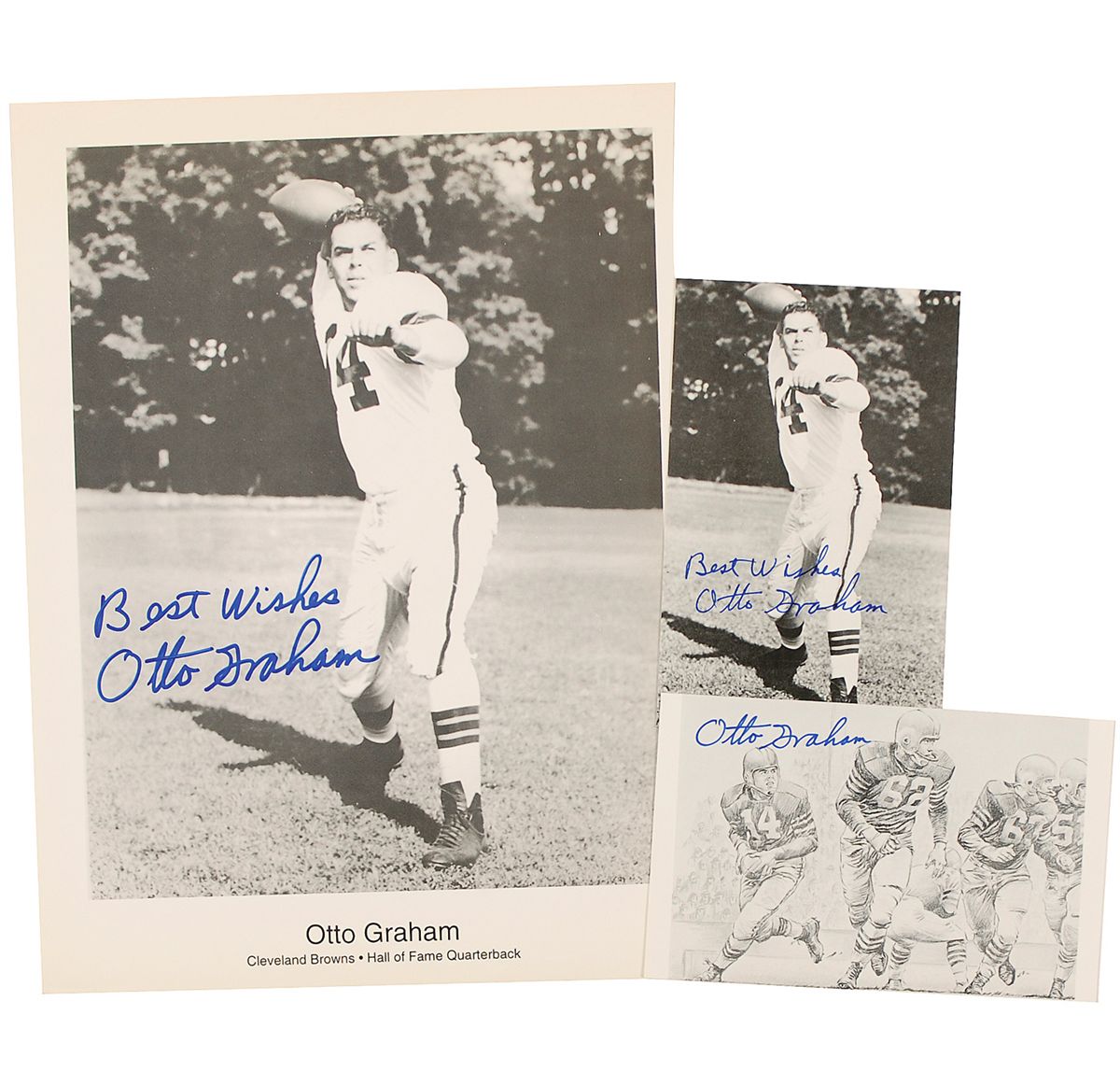 Three signed cardstock photos ranging in size from 3.5 x 5.5 up to 8.5 x 11, each signed in blue felt tip by Graham. In fine condition.