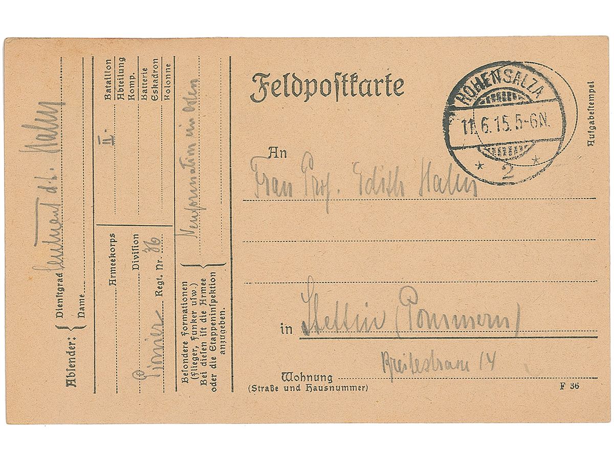 German chemist (1879–1968) who won the 1944 Nobel Prize for the discovery of nuclear fission. Early ALS in pencil in German, signed “Otto,” one page on a 3.5 x 5.5 postcard, June 10, 1915. Letter to his wife Edith. In part (translated): “We were previously at idiotic temperature in the trenches, ridden with immense speed back home and arrived here totally wet. As a result of that we have drunk an enormous amount of water.” In fine condition.