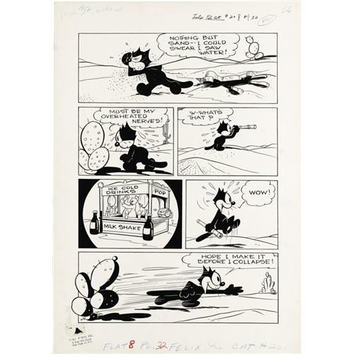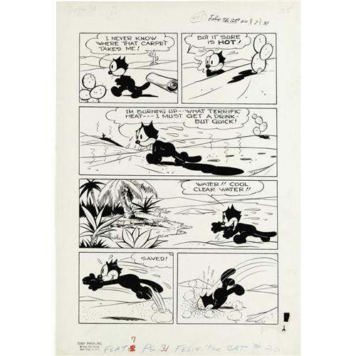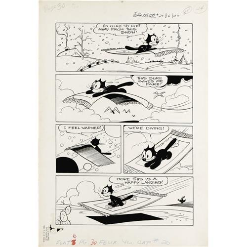 <B>Otto Messmer and Joe Oriolo - Felix the Cat #20, Complete 12-page Story "Felix in Miragia" Original Art (Toby Press, 1951).</B></I> Riding high on his magic carpet, Felix travels to Miragia, and helps a desert ranger find the source of desert mirages, in this story from the first Toby Press issue of <B>Felix the Cat</B></I>. Each page has an image area of 12" x 18". In Very Good condition.<BR><BR><b>Shipping:</b> Large Flat (<a target="_blank" href="http://www.heritageauctions.com/common/shipping.php">view shipping information</a>)