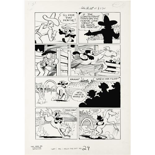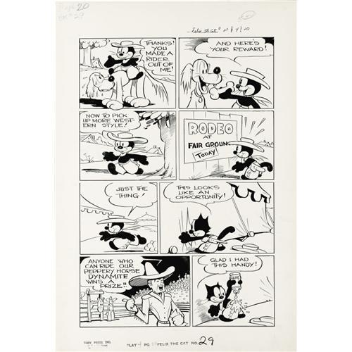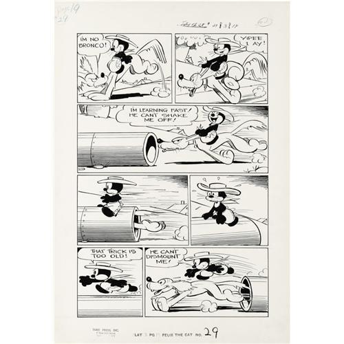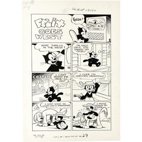 <B>Otto Messmer - Felix the Cat #29, Complete 11-page Story "Felix Goes West" Original Art (Toby Press, 1952).</B></I> Go west, young Felix! Bronco-buster Felix rides a rodeo horse into the west, and becomes a bounty hunter, in this dusty eleven pager by Otto Messmer. Each page has an image area of 12" x 18". In Excellent condition.<BR><BR><b>Shipping:</b> Large Flat (<a target="_blank" href="http://www.heritageauctions.com/common/shipping.php">view shipping information</a>)