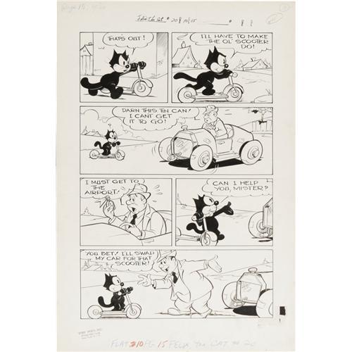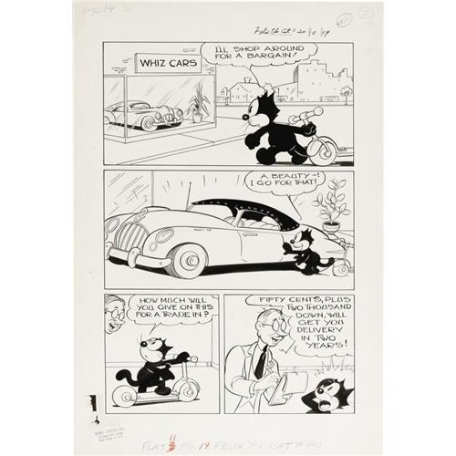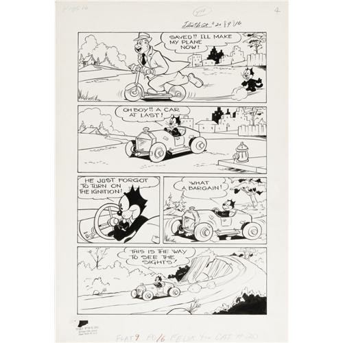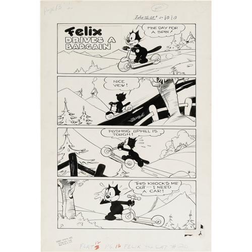 <B>Otto Messmer and Joe Oriolo - Felix the Cat #20, Complete 16-page Story "Felix Drives a Bargain" Original Art (Toby Press, 1951).</B></I> Felix takes the road less travelled to get his hands on a new car, in a sixteen page story you'll really "dig!" Penciled by Otto Messmer and inked by Joe Oriolo. Each page has an image area of 12" x 18". In Very Good condition.<BR><BR><b>Shipping:</b> Large Flat (<a target="_blank" href="http://www.heritageauctions.com/common/shipping.php">view shipping information</a>)