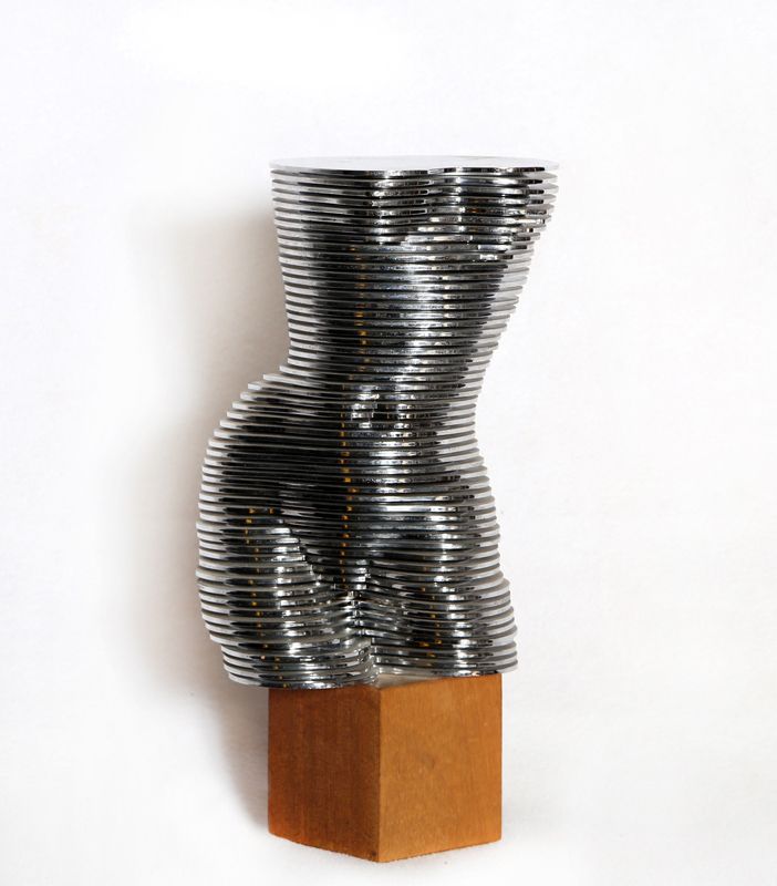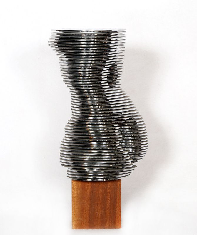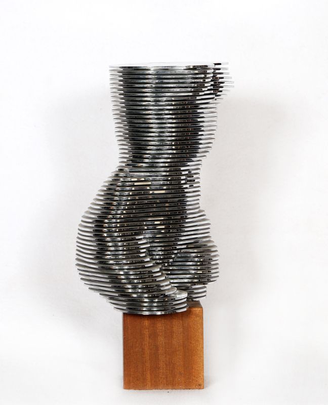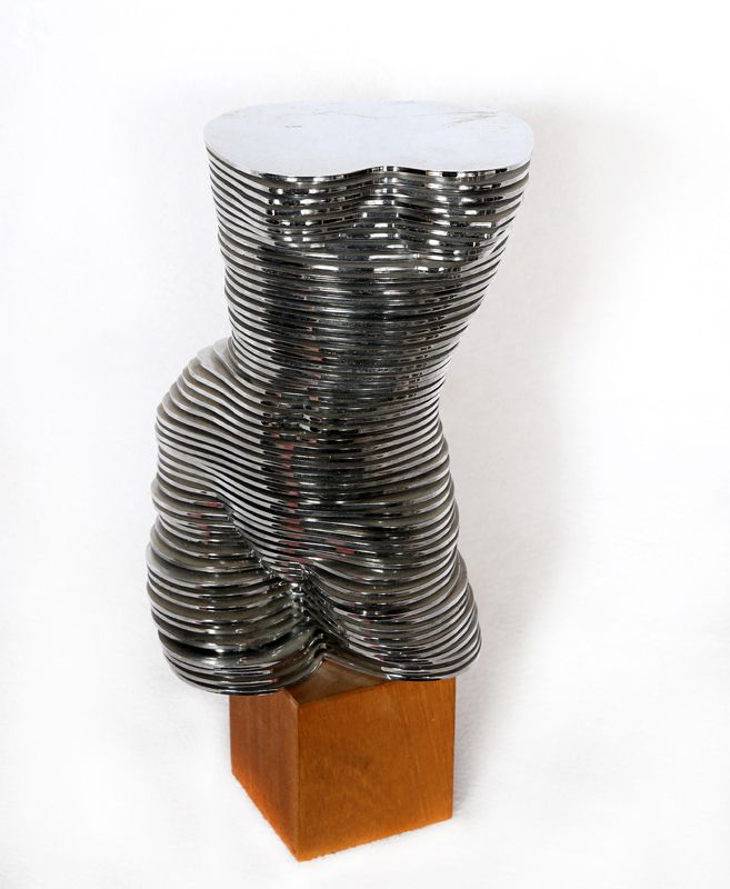 Otto Monestier, Eva, Chrome on Plastic Sculpture on wood base