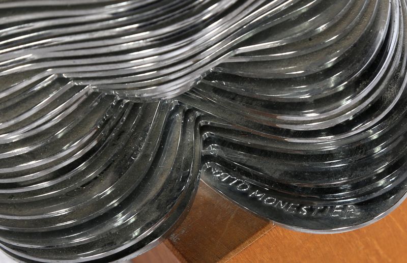 Medium: Chrome on Plastic Sculpture on wood base, signature inscribed
