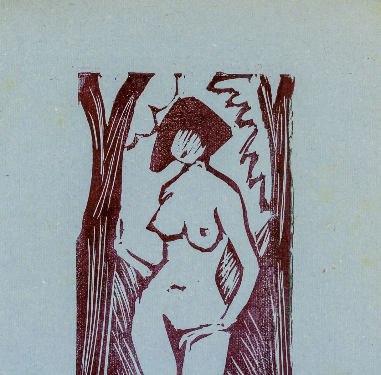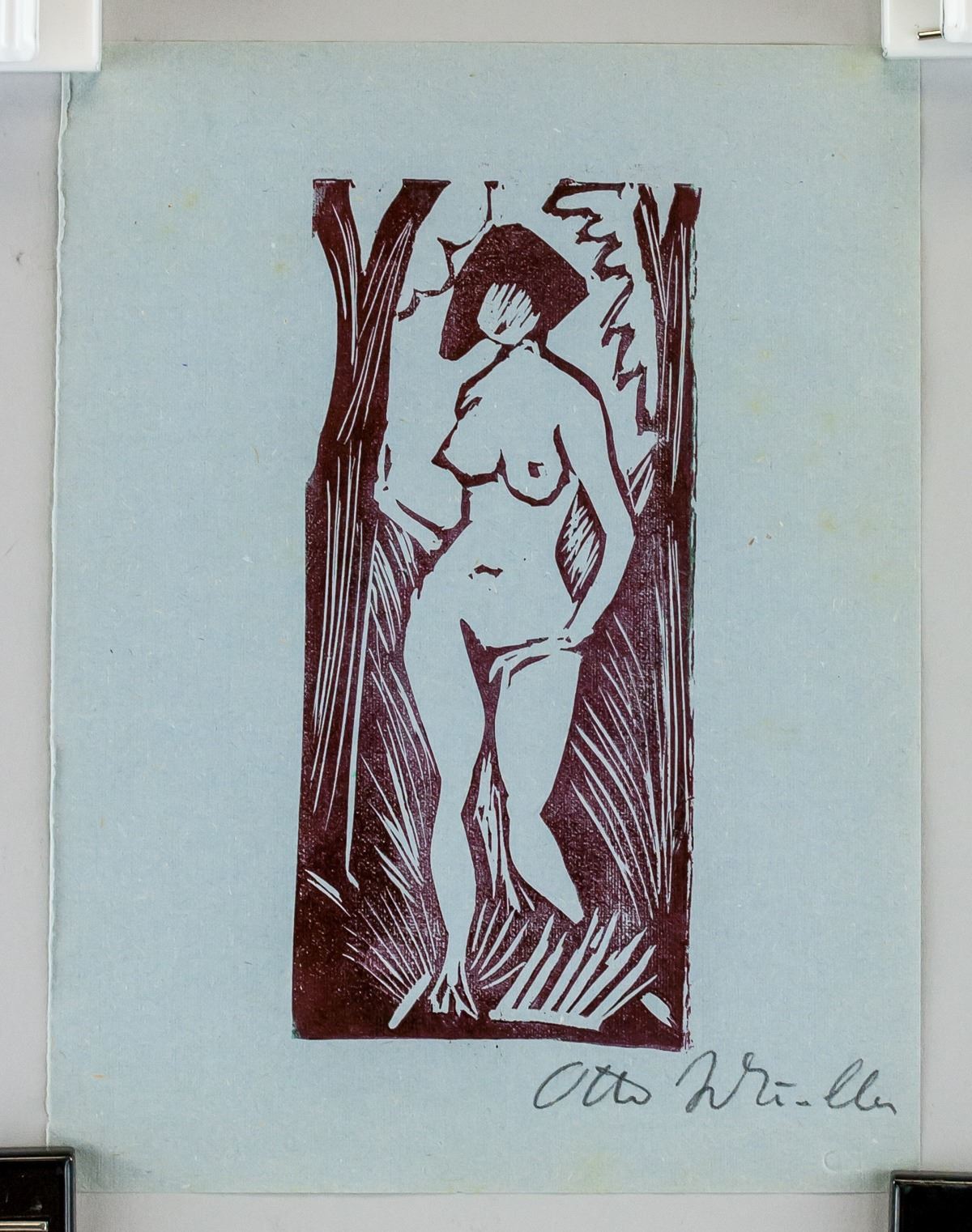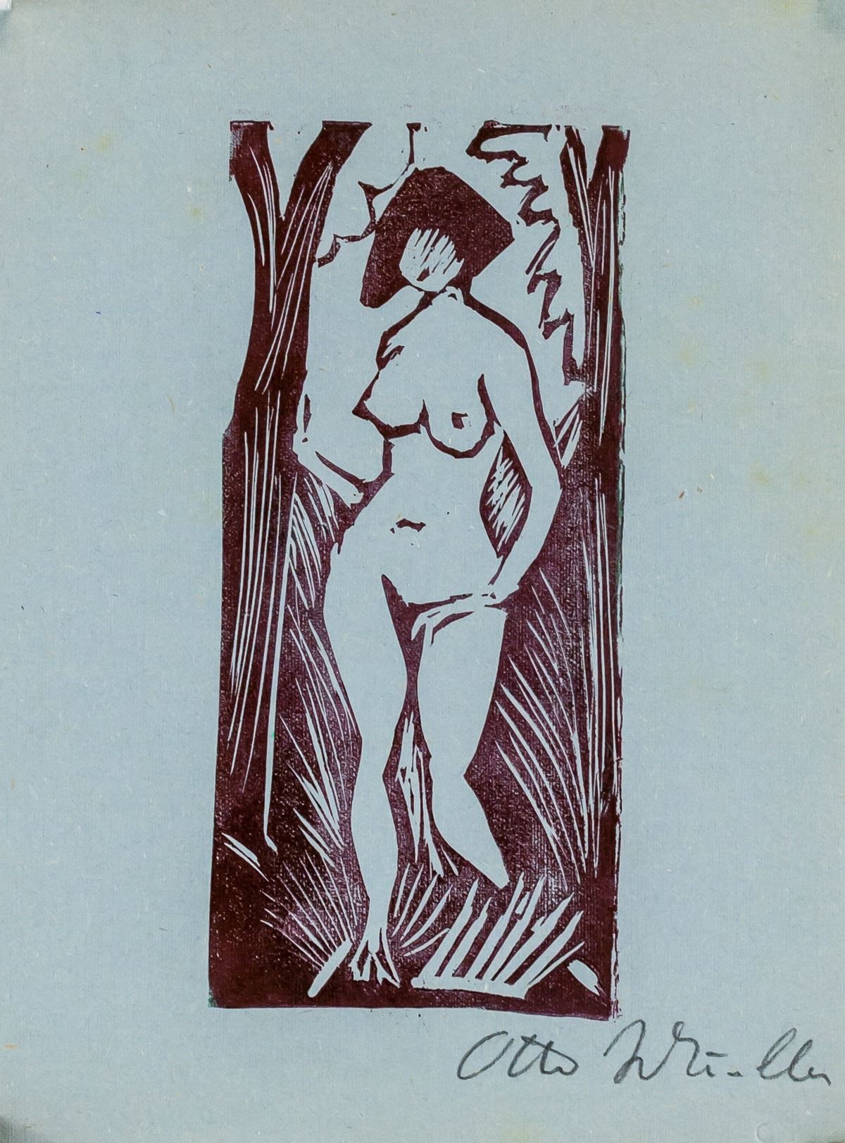 Woodcut on paper. Featuring a nude. Signed Otto Mueller on the lower right corner. Stamped illegibly on verso. Attributed to Otto Mueller (1874-1930, German). 18 x 13.5 cm (7 x 5.25 inches)