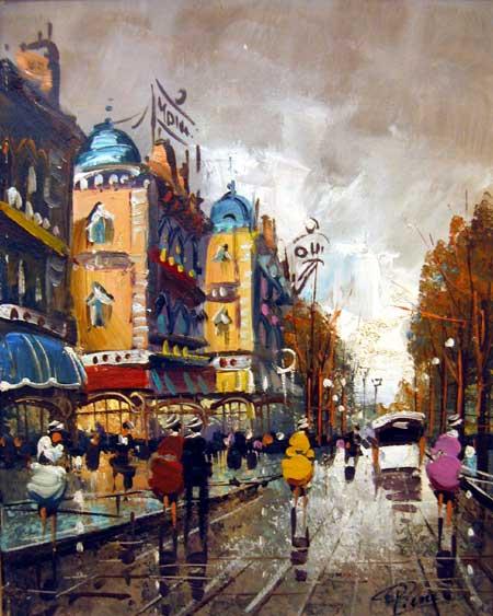 Otto Piene, Russian, Israeli Art, B. 1928, Parisian Street, Oil on canvas, 50x40cm, Signed., , , , .,
