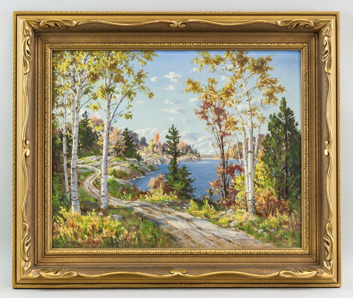 Oil on board, framed. Featuring a Northern Ontario landscape scene overlooking lake. Signed by Otto Planding (1887-1967, Canadian) on the lower right corner. Otto Planding was born in Germany in 1887. ... Otto Planding came to Canada from Germany in 1913. From the moment of his arrival from Germany until his death in 1964, he supported himself exclusively by painting. He lived very humbly in Toronto and eschewed luxuries. Otto Planding's work has been offered at auction multiple times, with realized prices ranging from $97 USD to $1,377 USD, depending on the size and medium of the artwork. Since 2007 the record price for this artist at auction is $1,377 USD for LAKE LOUISE, sold at Waddington's in 2011. The artist died in 1967. PROVENANCE: Estate sale, Toronto
