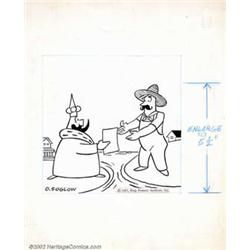 Otto Soglow - Original Illustration of The Little King (King Features Syndicate, 1961). A master of "silent" cartooning, Soglow's characters managed to speak volumes without ever saying a word. From 1934 until his death in 1975, Soglow worked on his strip, The Little King, a gentle humor strip that first gained popularity in the U.S. and eventually found a worldwide audience. Offered here is a specialty piece that is a perfect example of Soglow's spare, minimalist style. Measuring approximately 8" x 9.75" overall, with an image area of approximately 5.25" x 5.25", this piece is in excellent condition and is signed by the artist in the lower left corner. Important notice: We expect to be auctioning lots at the rate of 200-250 per hour. Sometimes eBay Premier live bid software cannot keep up with that pace, so we strongly recommend that you place a realistic proxy bid now as insurance to avoid disappointment. Also please note that all Heritage/CAA lots purchased through eBay Premier carry a 20% Buyer's Premium. Please make sure you read the Terms and Conditions.
