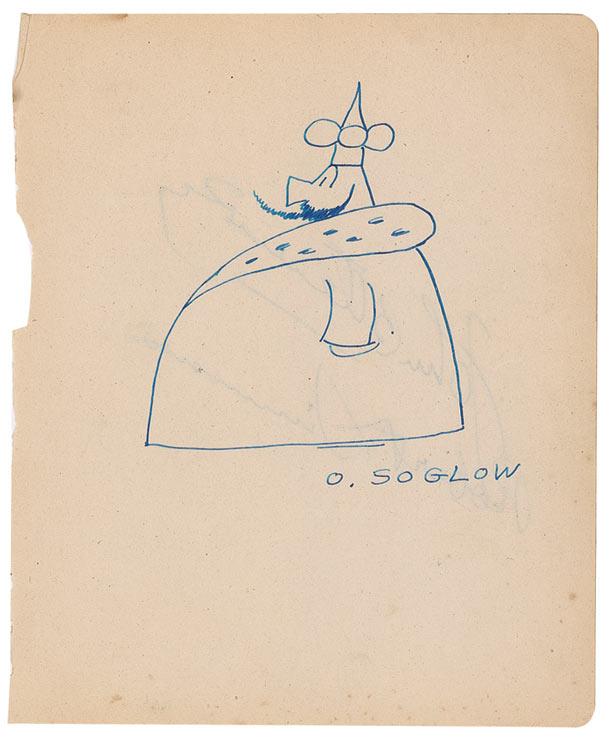 Original vintage signed ink sketch of the Little King on an off-white 5.75 x 7 album page. In fine condition, with scattered light toning and foxing.