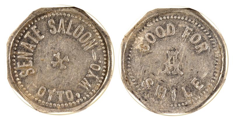 Obverse: Senate Saloon / Otto, Wyo.; reverse: Good For / A / Smile.