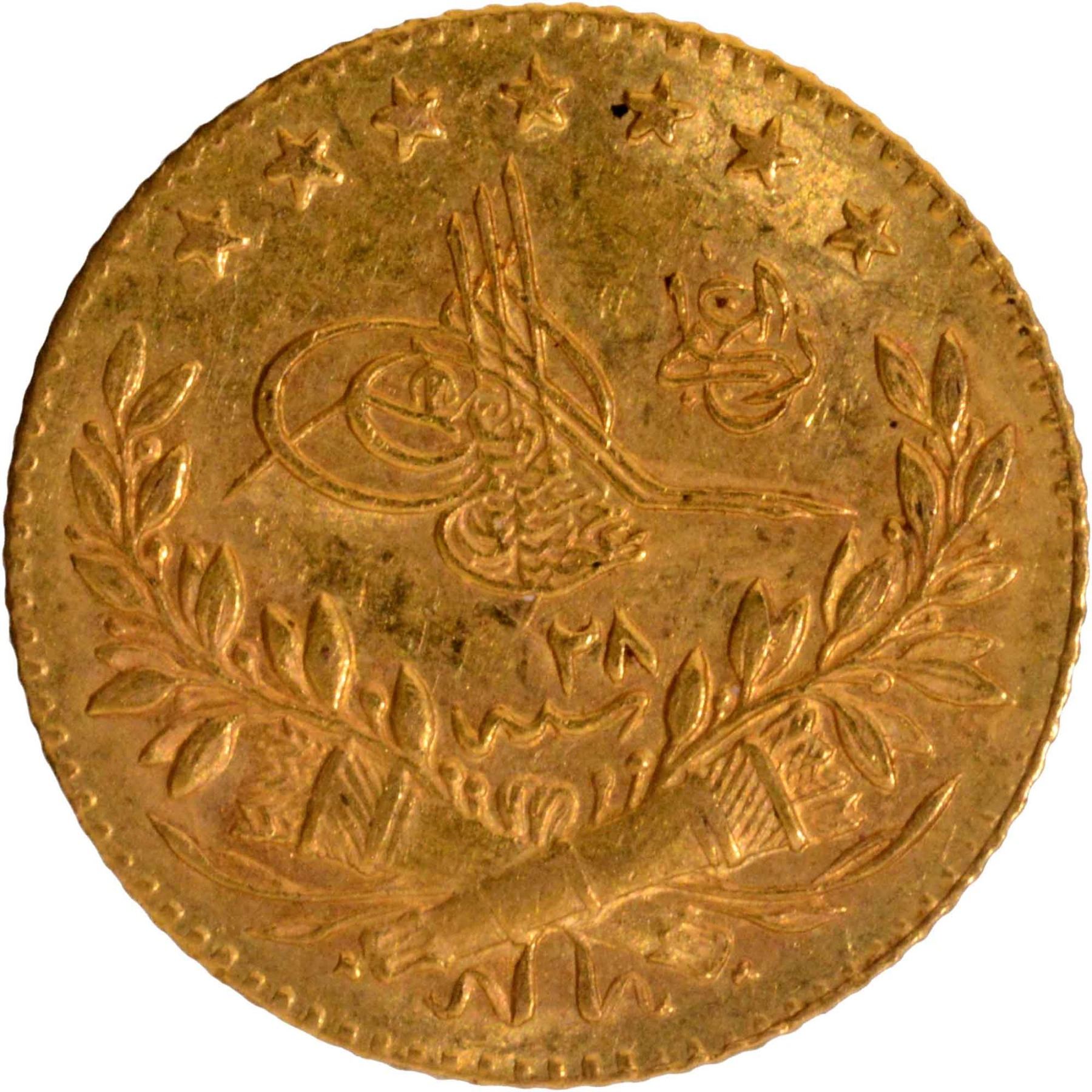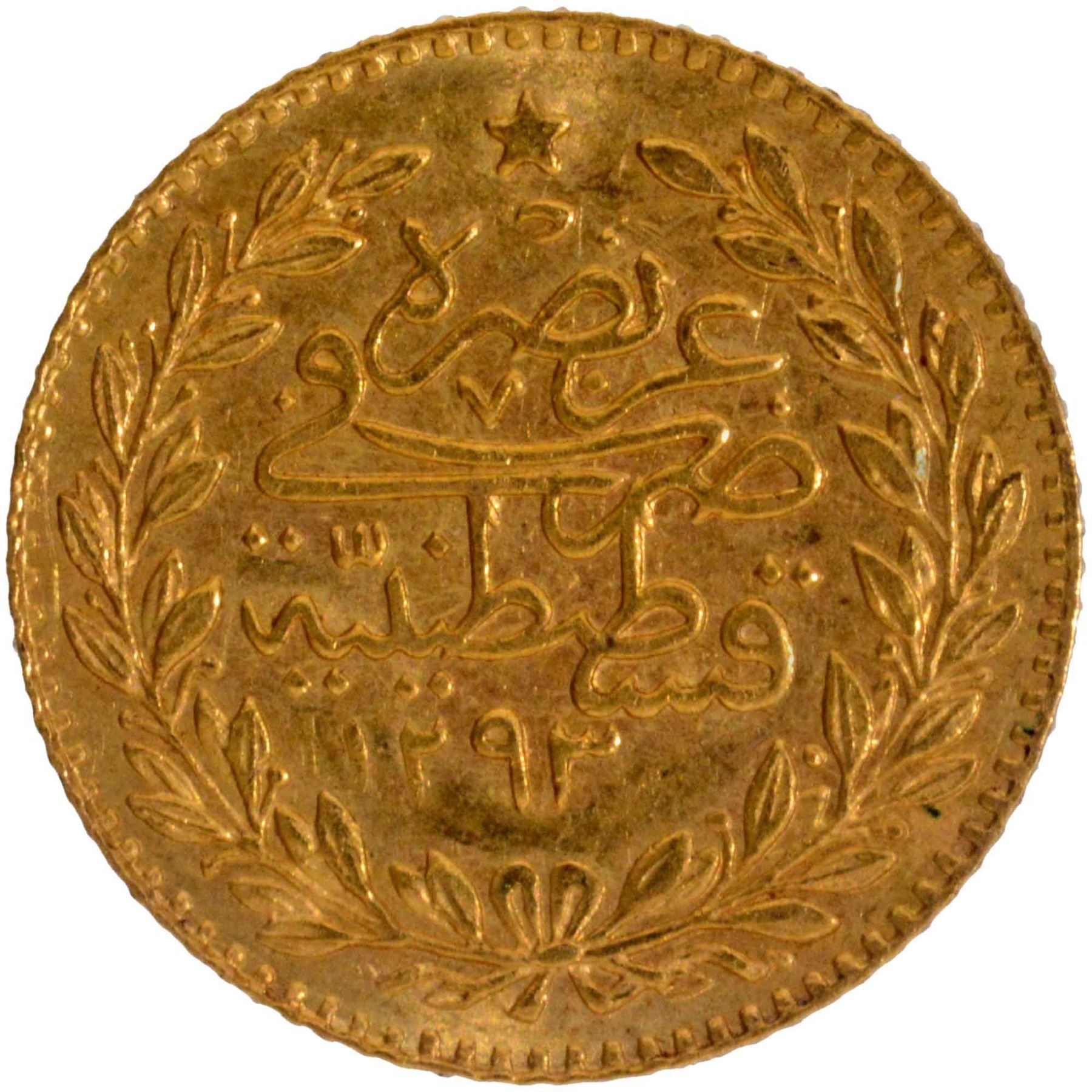 Ottoman Empire Gold Twenty Five Kurush Coin of Abdul Hamid II of Turkey.