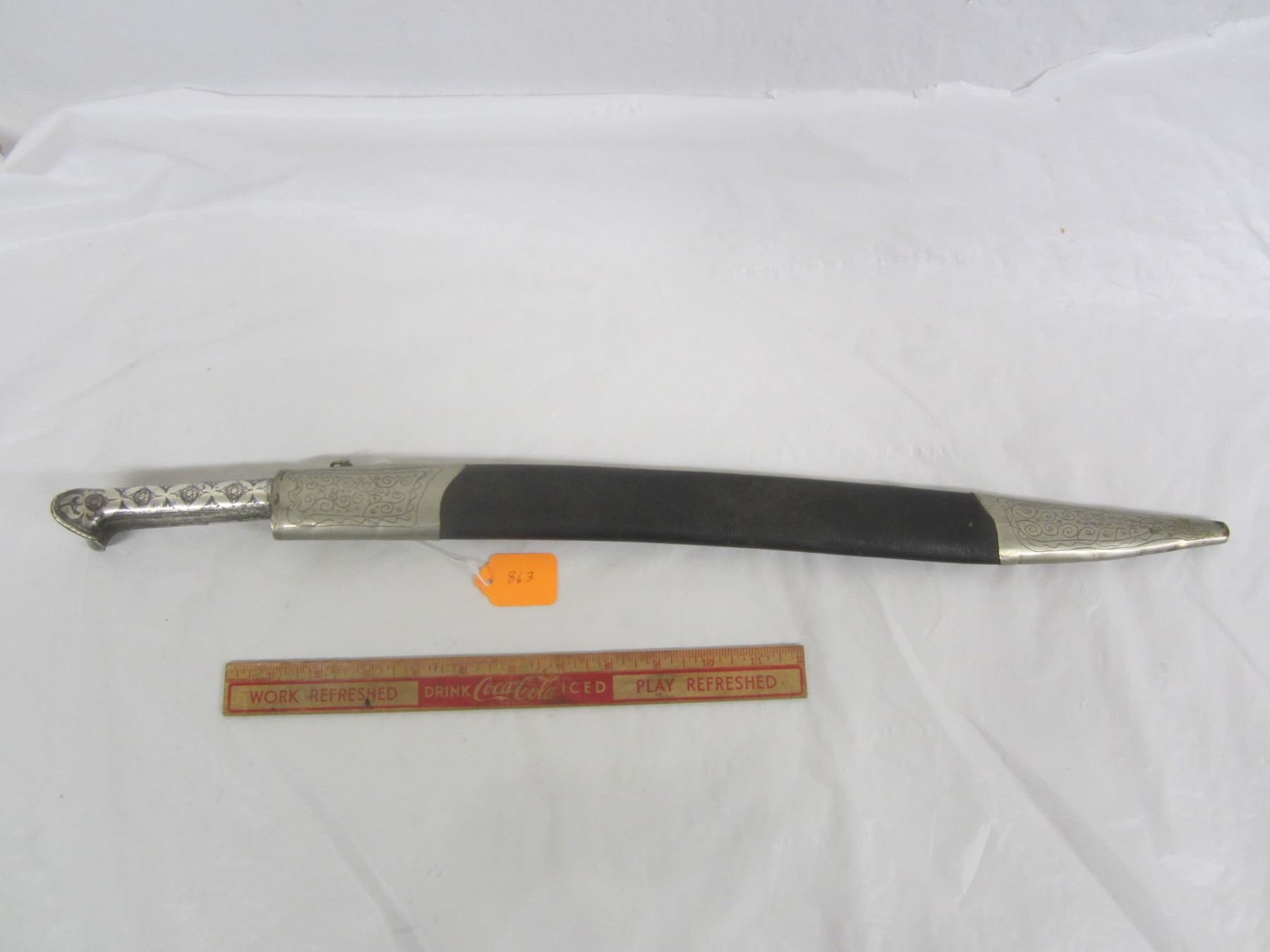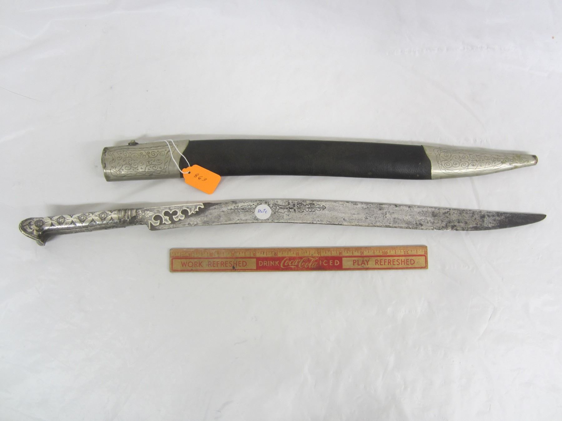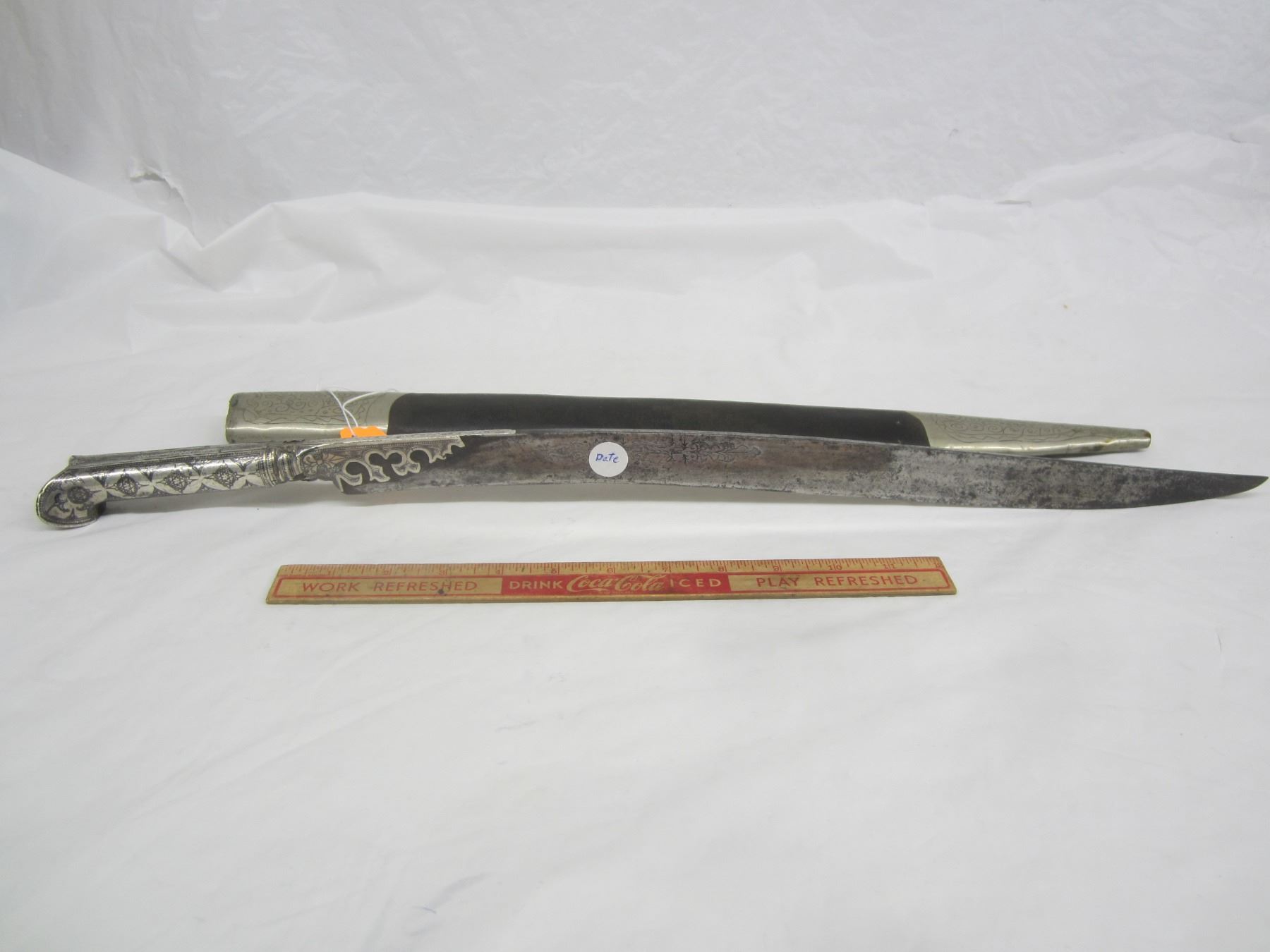 Ottoman Empire Sword and Sheath Yataghan Dated 1802 Silver Handle