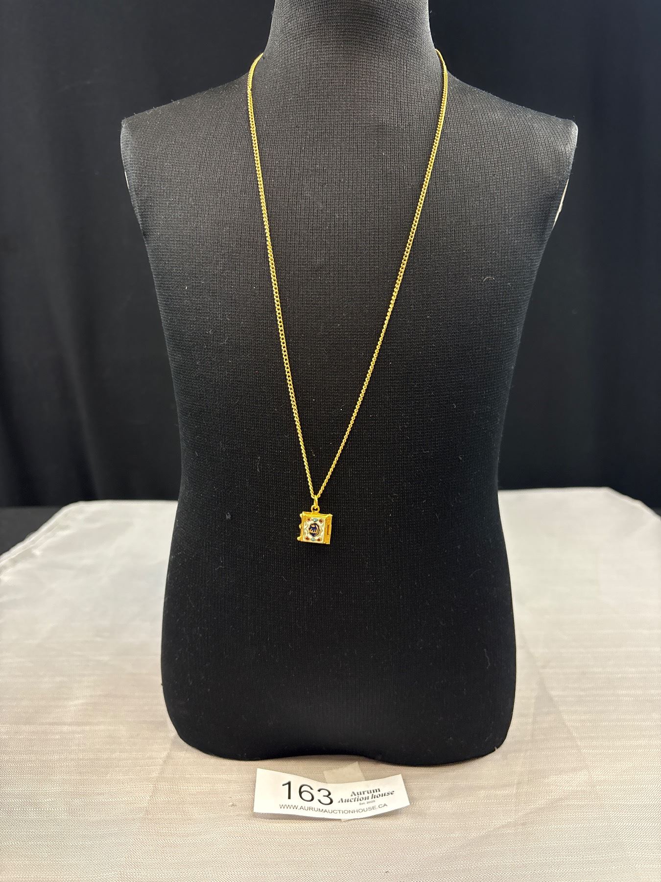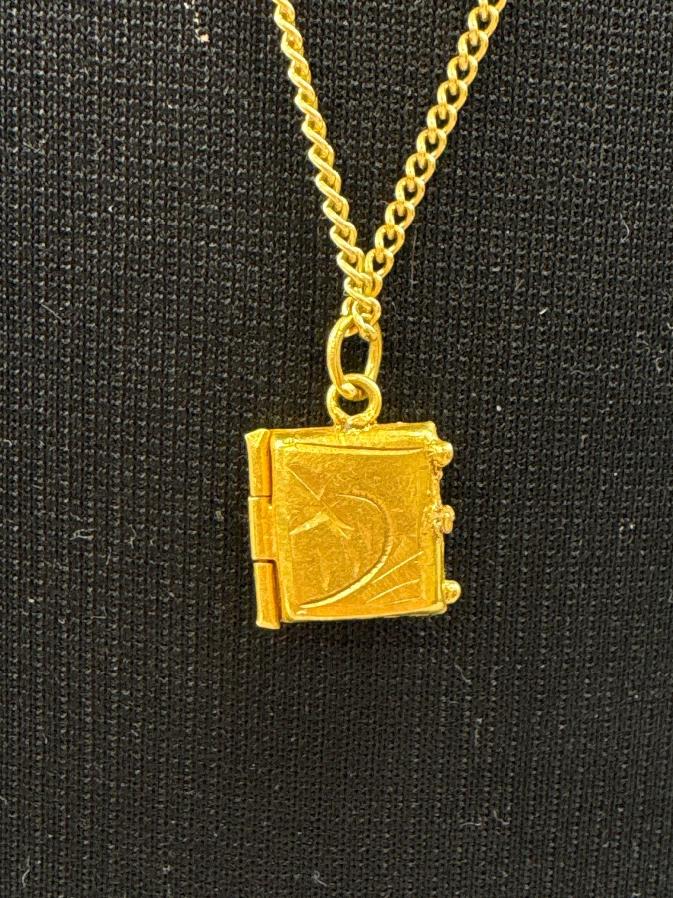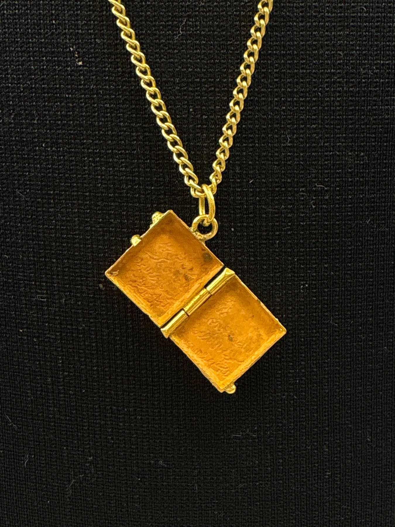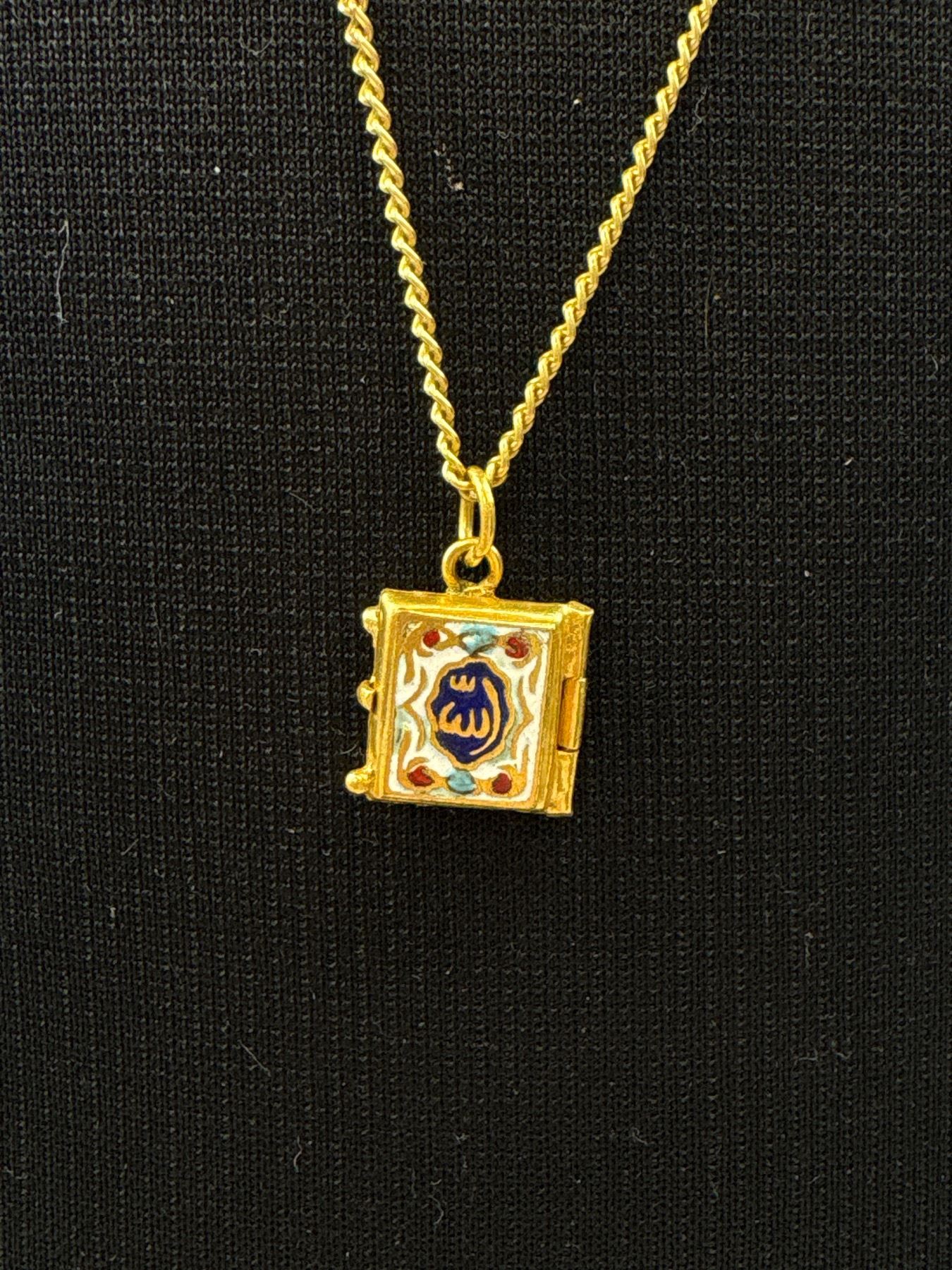 Ottoman Islamic Gold Plated Quaran Enamel Book Locket and Chain