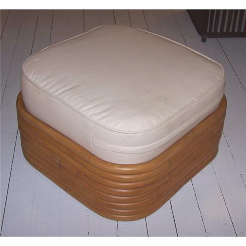 Rattan Ottoman in the Godfather style. (key: tropical, Hawaiian, coastal, outdoor furniture, mid century, modern, retro, vintage rattan furniture)