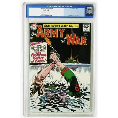 <B>Our Army at War #146 (DC, 1964) CGC NM- 9.2 Off-white to white pages.</B></I> Featuring Sgt. Rock. Joe Kubert cover. Kubert and Jack Abel art. Overstreet 2006 NM- 9.2 value = $125. CGC census 4/06: 2 in 9.2, none higher.