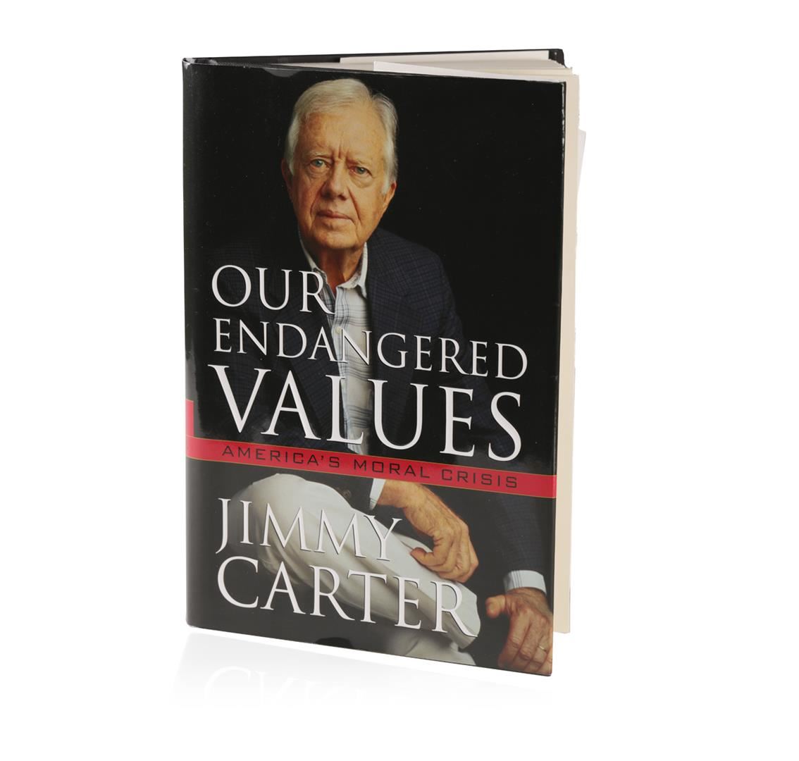 Up for auction is a copy of "Our Endangered Values: America's Moral Crisis" by Jimmy Carter. This copy is signed by President Jimmy Carter himself and comes with a Certificate of Authenticity. Both book and autograph are in good condition. This book was listed at Number 1 on The New York Times Non-Fiction Best Seller List and has inspired many all over the world!