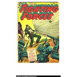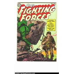Our Fighting Forces 1-141 almost complete set (DC, 1954). Most of the big-name artists that are associated with DC war comics worked on this long-running title, including Russ Heath, Joe Kubert, and John Severin. Putting together a complete set of any of DC's Big 5 can be a daunting task; here, all the work has already been done for you. This is a complete set (missing only #29 and #30 which are not keys) through 1973 with issue #141. Conditions are as follows: #1 is VG, #2 is VG-, #3 is FA, #4 is VG, #5-9 average G/VG, #10 is GD-, #11-20 range from GD to VG+ averaging around VG-, #21-28 range from GD to FN- averaging around VG-, #31-44 also average VG-, #45 (Gunner and Sarge begins) is F/VF, #46-95 range from GD to VF+, with the average around VG+, #96-141 also vary quite a bit, with copies from GD to VF/NM with an average of about FN-. Overstreet 2002 value for group = $2,600. 139 Comic Books Important notice: We expect to be auctioning lots at the rate of 200-250 per hour. Sometimes eBay Premier live bid software cannot keep up with that pace, so we strongly recommend that you place a realistic proxy bid now as insurance to avoid disappointment. Also please note that all Heritage/CAA lots purchased through eBay Premier carry a 20% Buyer's Premium. Please make sure you read the Terms and Conditions.