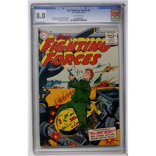 <B>Our Fighting Forces #4 (DC, 1955) CGC VF 8.0 Off-white pages.</B></I> Ross Andru art. Jerry Grandenetti cover. Overstreet 2007 VF 8.0 value = $218. CGC census 6/07: 1 in 8.0, none higher. <I>From the Keith Marlow Collection.</B></I><BR><BR><b>Shipping:</b> Comics - Slabbed (certified) (<a target="_blank" href="http://www.heritageauctions.com/common/shipping.php">view shipping information</a>)