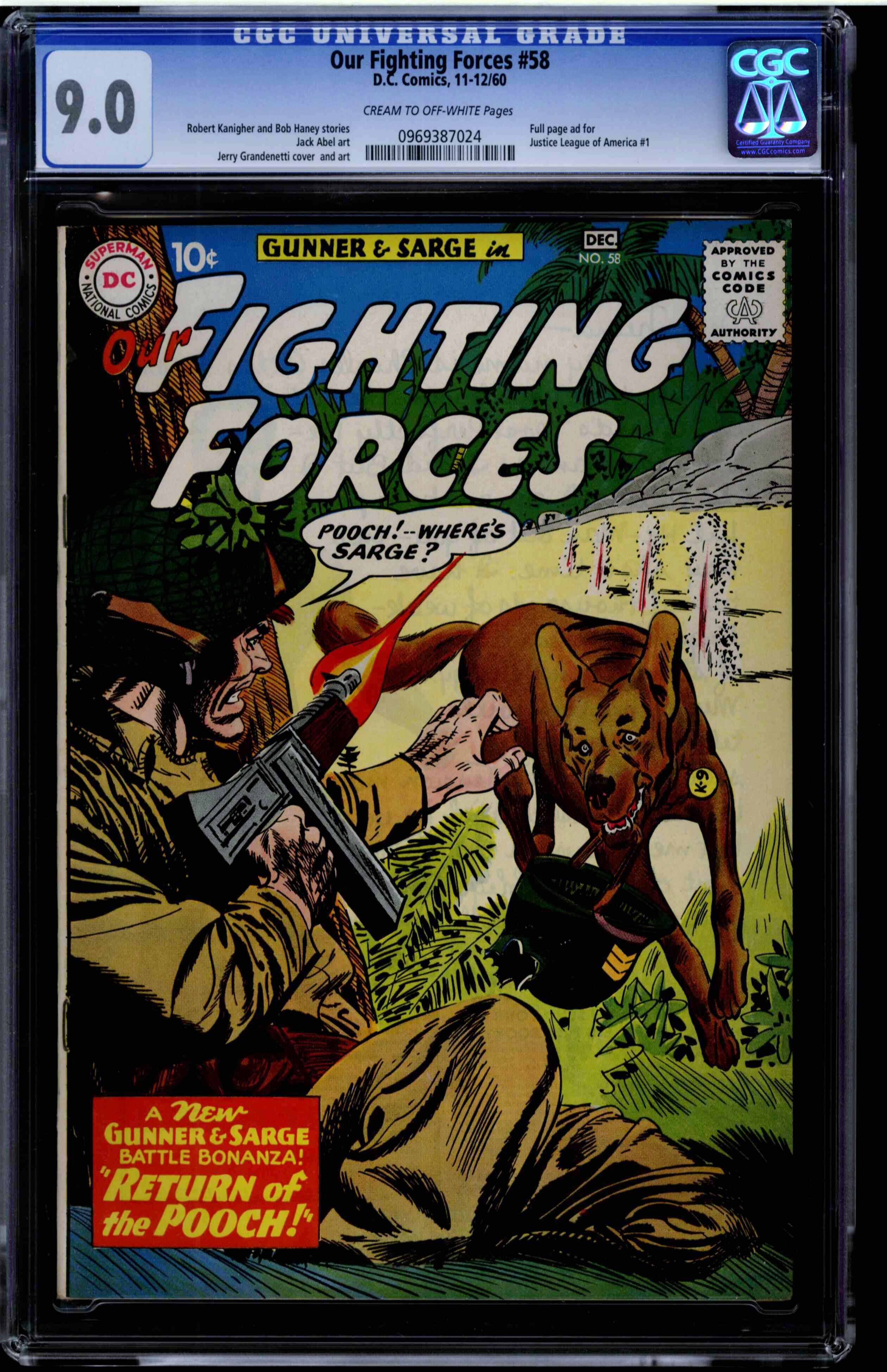 11-12/60 D.C. Comics Universal 9.0 CREAM TO OFF-WHITE 9.0 Robert Kanigher and Bob Haney stories Jack Abel art Jerry Grandenetti cover and art Justice League of America #1 Full page ad for. CGC census states: 1 at 9.0 with only one better.