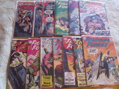 Our Fighting Forces #39, 53, 56-57, 60-61, 63, 65, 76, 78, 126, 136, 141. 13 issues total. Avg condition ranges from FN- to VF