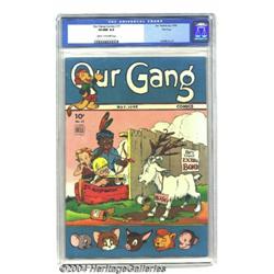 <B>Our Gang #17 Dell File Copy (Dell, 1945) CGC VF/NM 9.0 Cream to off-white pages.</B></I> The Little Rascals are joined by Benny Burro and other funny-animal favorites, all in one lovable package. This gorgeous Dell File Copy sparkles with rich color, and, as a bonus, contains Carl Barks art. Highest grade yet assigned by CGC for this issue. Overstreet 2003 VF/NM 9.0 value = $247; NM- 9.2 value = $325. <BR><BR><B>Important notice:</B> Heritage usually auctions material at the rate of 200-250 lots per hour. On some occasions eBay Live bid software or the Internet may not be able to keep up with the pace of the auction. We recommend placing a realistic absentee bid now as insurance to avoid disappointment. Occasionally the auctioneer may eliminate or reject an eBay Live bid, and the auctioneer may also reopen a lot after the close of the eBay live bidding (usually because we missed an audience bid), and may reject your bid even if it shows you as the winning bidder. By bidding via eBay Live, you agree that Heritage may award the lot to another bidder at its sole discretion under the circumstances described above or any other reasonable circumstances. Since eBay bids are not shown to us until we open the lot on the floor, we treat those bids just like floor bids. In most cases the floor responds before the eBay bid is presented to us, due to Internet lag time, so for consistency we have made it a policy that floor bids are always considered first over tie eBay live bids. Also please note that all Heritage lots purchased through eBay Live carry a 20% Buyer's Premium. Please make sure you read the Terms and Conditions before you bid. </span></font></tr></table></td></tr></table>