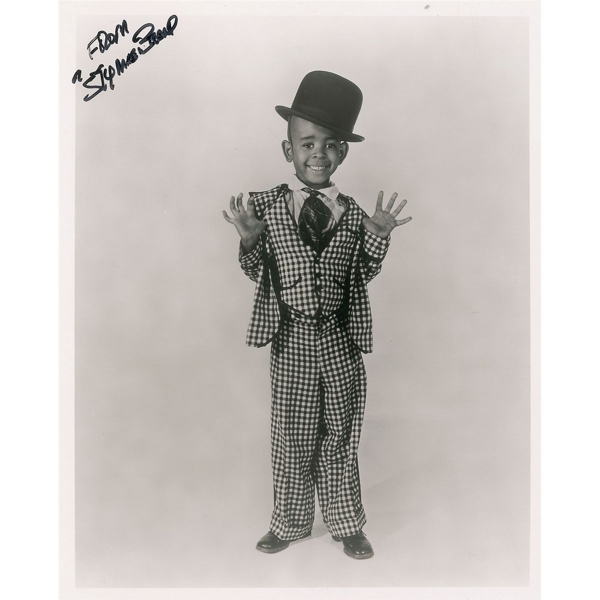 Glossy 8 x 10 photo of Beard in his classic Our Gang role, signed in black felt tip, “From Stymie Beard.” In very fine condition.