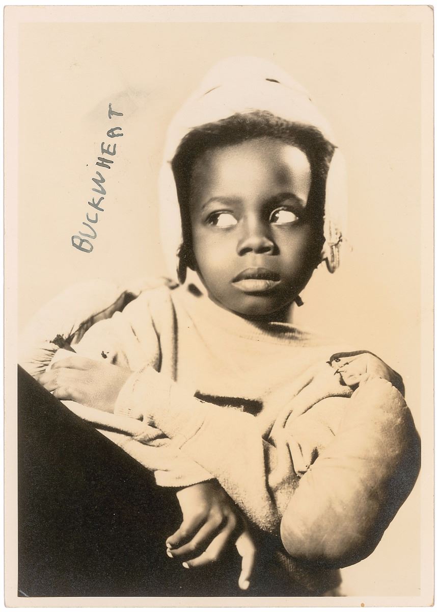 Vintage matte-finish 5 x 7 photo of the classic Our Gang actor with a suspicious expression, signed vertically during his childhood in fountain pen, “Buckwheat.” In fine condition, with trivial soiling and a small crease to lower left corner tip. Accompanied by the original mailing envelope.