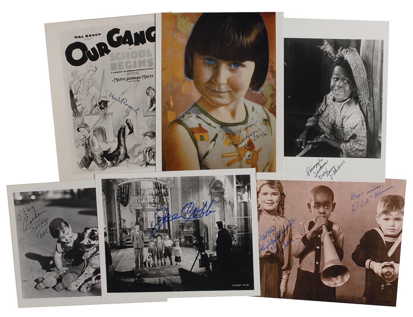 Six glossy approximately 8 x 10 or 10 x 8 photos, each signed in felt tip by the respective Our Gang star: Hal Roach, Joe Cobb, Mary Ann Jackson (colorized), Pineapple Jackson, Gordon ‘Porky’ Lee, and Dick Moore/Dorothy DeBorba. In overall fine condition, with scattered creases, scratches, and staining to the Roach photo.