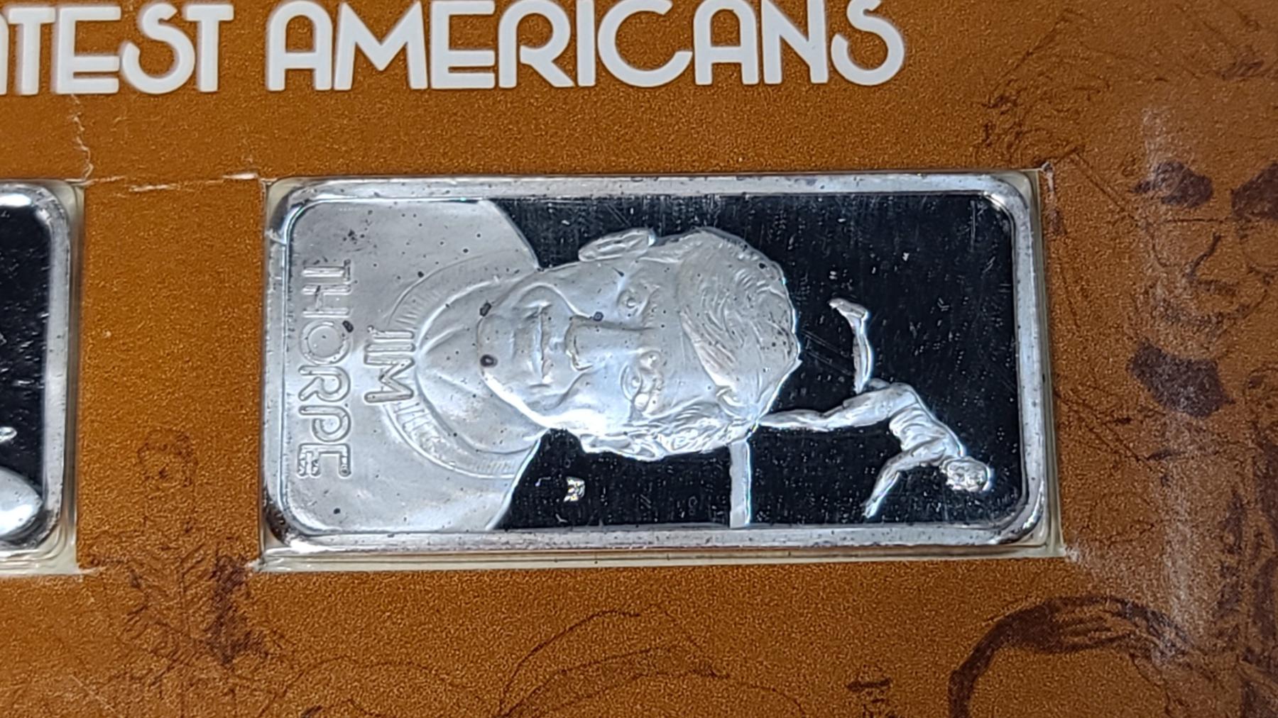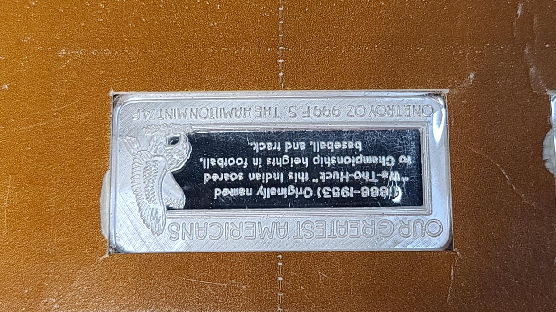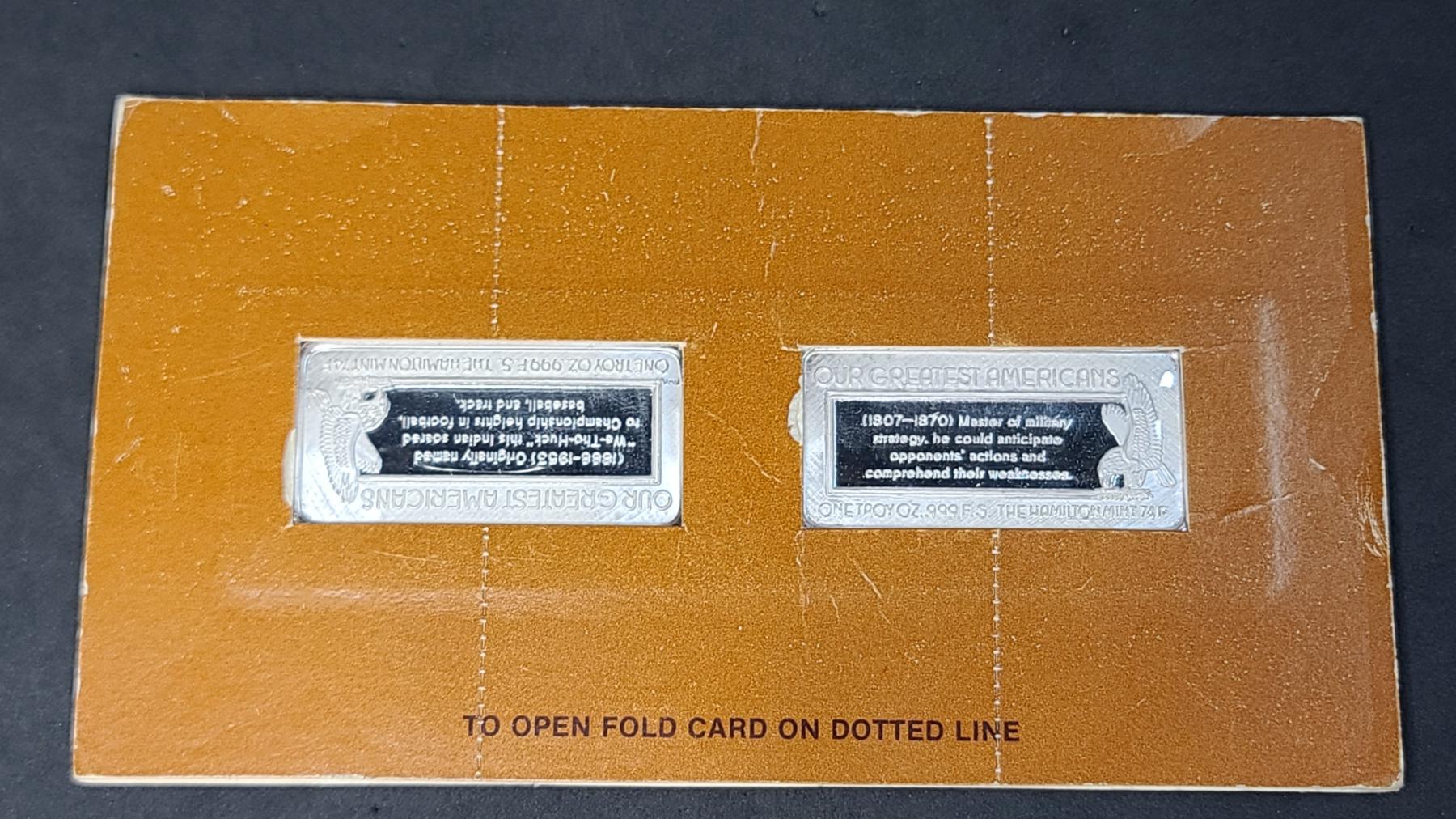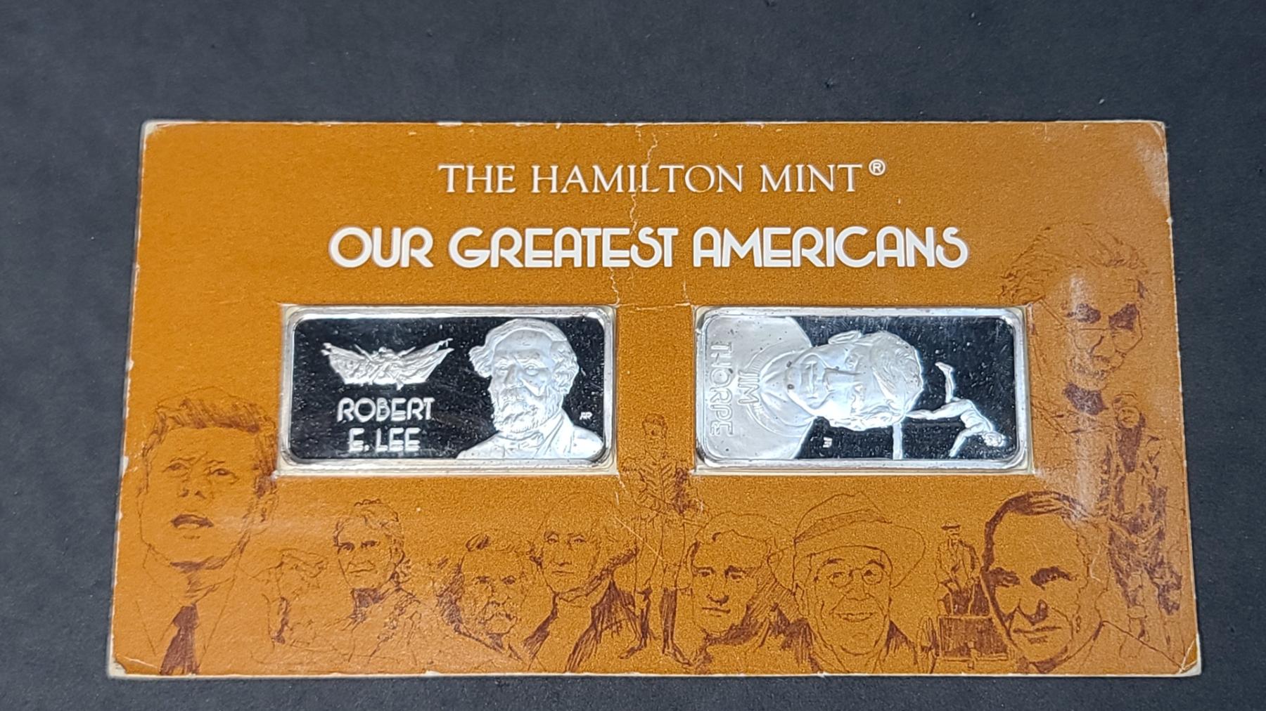 Our Greatest Americans Robert E Lee & Jim Thorpe 1 Troy Ounce .999 Fine Silver Bars From The Hamilton Mint
