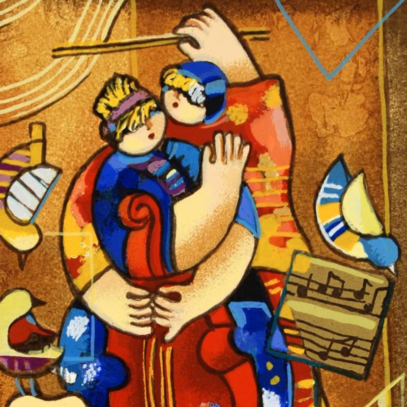 "Our Strings Attached" is a limited edition serigraph on paper by Dorit Levi, numbered and hand signed by the artist. Includes Certificate of Authenticity. Measures approx. 7.5" x 10" (border), 5.5" x 8" (image).