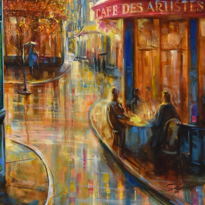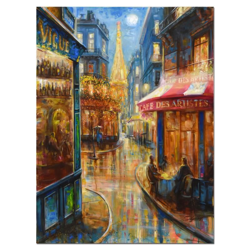 "Our Weekend In Paris" is an original oil painting on stretched canvas by Vadik Suljakov, hand signed by the artist. Includes Letter of Authenticity. Measures approx. 40" x 30" (image).