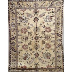 Oushak Rug, First Quarter 20th Century, Beige ground with a rosette and palmette field on var...